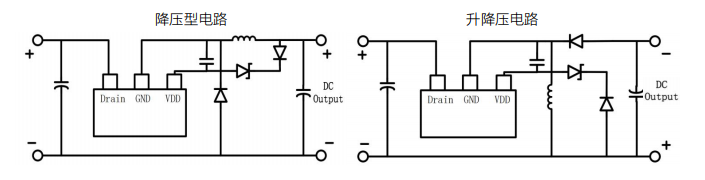 •主要特點: 高精度5V默認輸出;集成500V高壓MOSFET和高壓啟動電路;集成采樣電阻,超低系統(tǒng)成本;支持超低壓輸入(15V以上)應(yīng)用;支持降壓和升降壓電路;開關(guān)式峰值電流模式控制;超低待機功耗小于50mW;超低工作電流,支持小VDD電容;集成軟啟動電路;集成 31KHz帶抖頻功能振蕩器;集成式保護功能:、過載保護(OLP)、過熱保護(OTP)、逐周期電流限制(OCP)、前沿消隱(LEB);VDD欠壓保護;封裝SOT23-3L