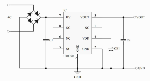 U40050 是一款緊湊型無電感設計的離線式 線 性 穩(wěn) 壓 器 。 U40050 固 定 輸 出 5V 電 壓 。 U40050是一種簡單可靠的獲得偏置供電的離線 式電源解決方案。 U40050 集成了600V 功率MOSFET ,啟動 控制電路,VDD電壓控制電路,低壓差穩(wěn)壓器 等。該芯片通過智能控制交流能量輸入以減小系 統(tǒng)損耗,提高系統(tǒng)效率,同時有效降低系統(tǒng)待機。 U40050集成有完備的帶自恢復功能的保護 功能:輸出短路保護,輸出過載保護,雷擊浪涌 保護和內置過溫保護等。