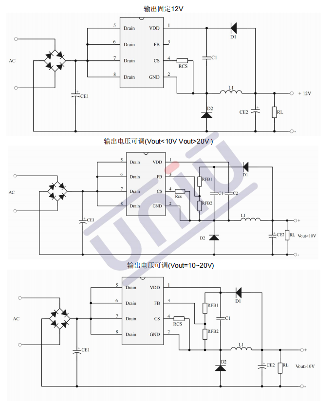 中的可聞噪音。此外,芯片內(nèi)部峰值電流檢測(cè)閾值可跟隨實(shí)際負(fù)載情況自動(dòng)調(diào)節(jié),可以有效降低空載情況下的待機(jī)功耗。U3210集成有完備的帶自恢復(fù)功能的保護(hù)功能:VDD 欠壓保護(hù)、逐周期電流限制、輸出過(guò)壓保護(hù)、過(guò)熱保護(hù)、過(guò)載保護(hù)和 VDD 過(guò)壓保護(hù)。